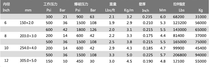 建議使用的最大工作壓力:上述爆破壓力值的50%(短暫使用)。為了保證軟管的最長使用壽命,建議工作壓力或拉伸力不要超過上述參數(shù)值的1/3。